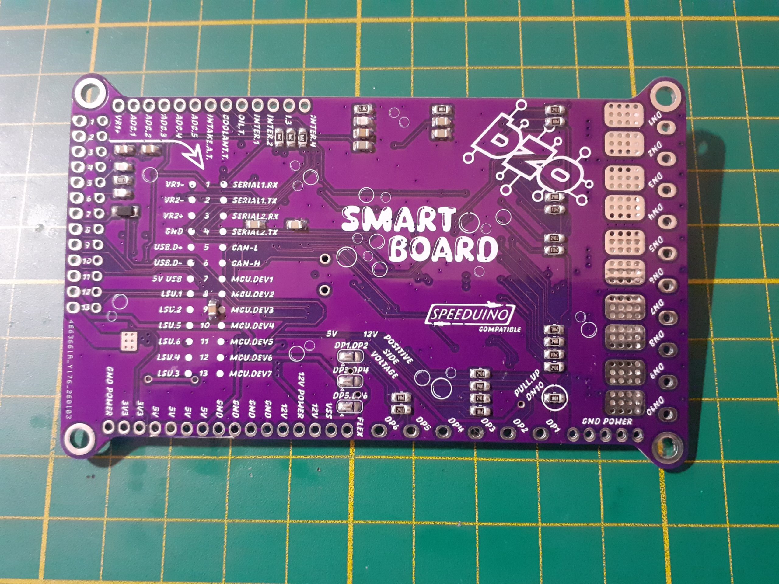 On trouve sur la SmartBoard un double conditionneur de signaux, un module large bande, le transceiver canbus, un BARO, un MAP (4bars) et plusieurs broches brutes programmables selon les besoins du projet.